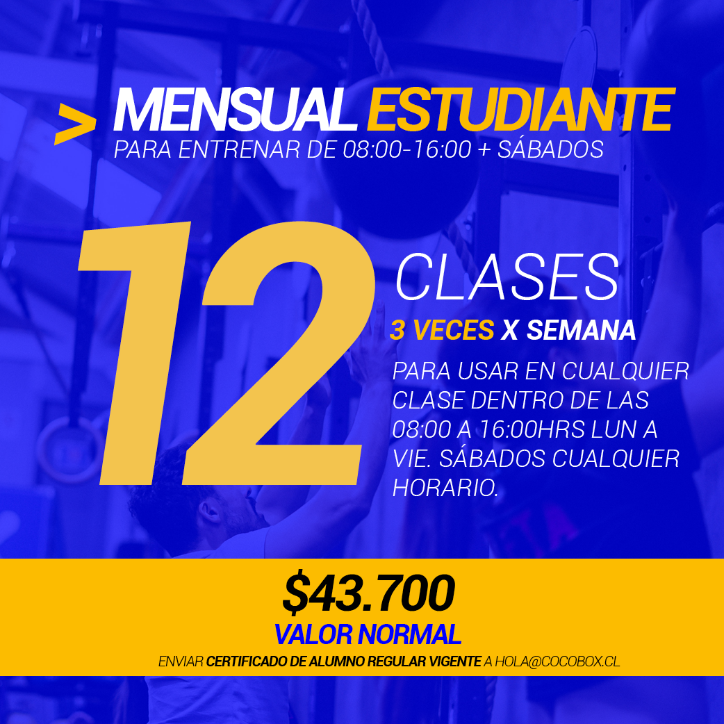 Plan Estudiante 08:00-16:00 30 días 12 clases 3 por semana